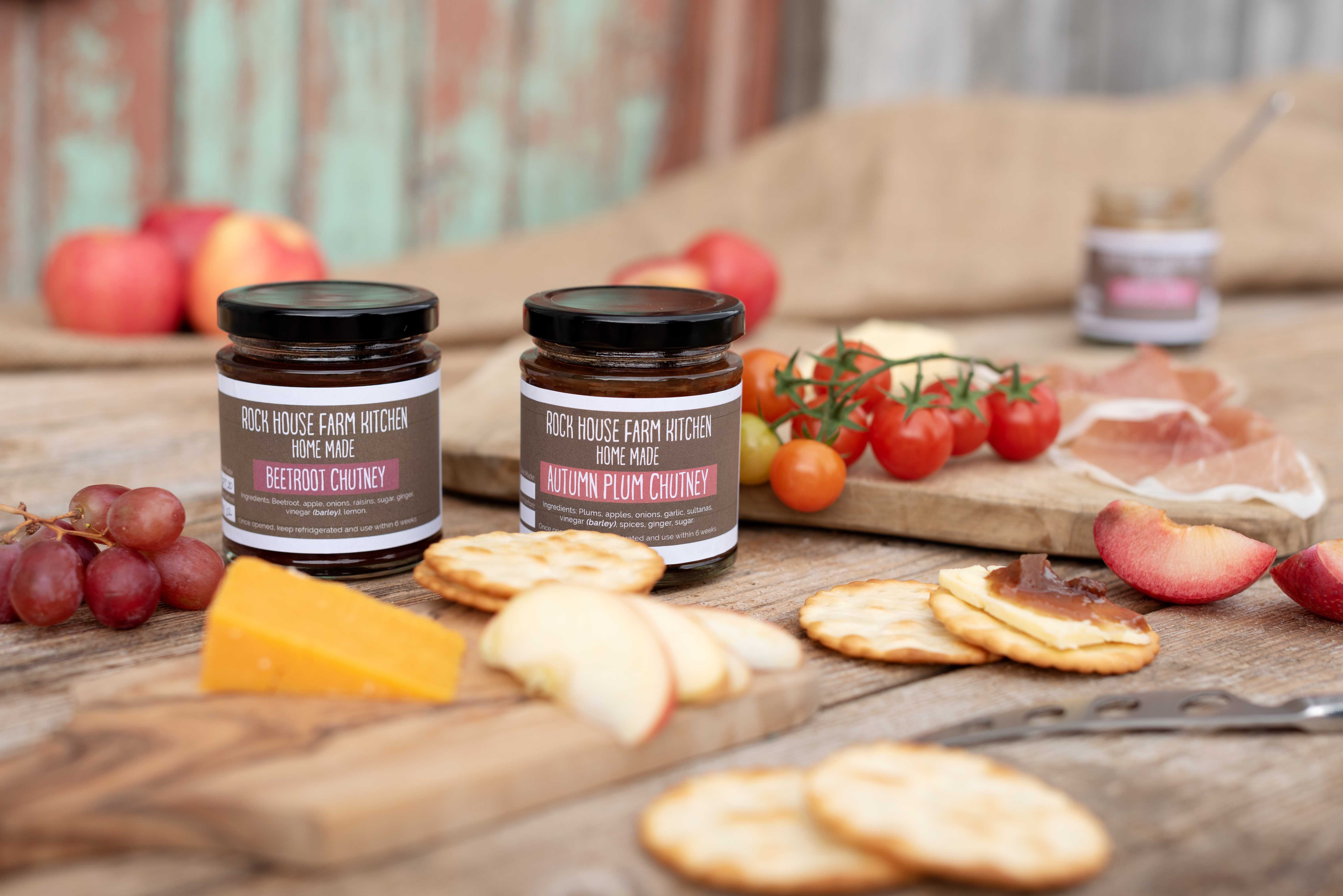 Autumn Plum Chutney, Beetroot Chutney, Mango Chutney, Marrow and Tomato Chutney, Pear Chutney, Piccalilli, Ratatouille Relish, Rhubarb Chutney, Rock House Apple Chutney, Spicy Chutney, Summer Harvest Chutney, Sweet Pepper Relish, Tomato and Onion Chutney – £2.50